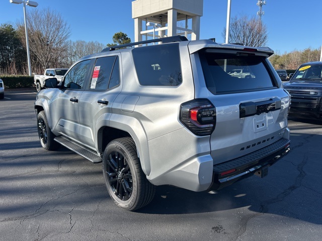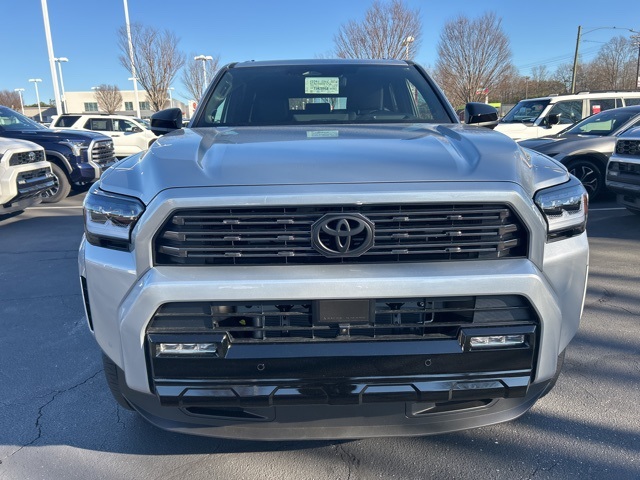 - Dark-chrome tri-bar grille; gloss-black mirror caps and door handles; color-keyed overfenders and rear spoiler; gloss-black "PLATINUM" and "4RUNNER" badges